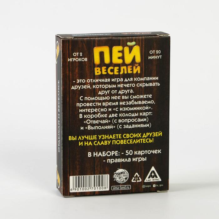 Купить игра для компании "пей веселей" 50 карт от 180 руб. с доставкой до пункта выдачи в Удомле. Интернет магазин ДекаМаркет. Оплата при получении.